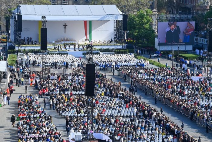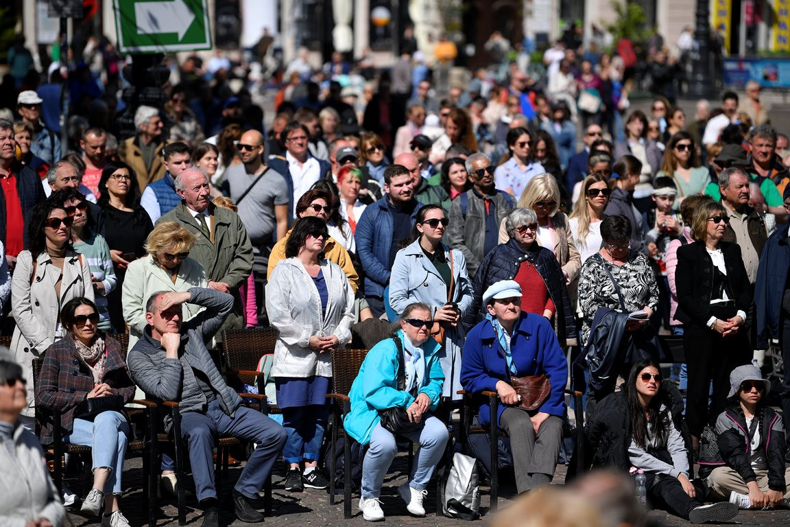 Akik a 25 ezer ember befogadására képes téren nem kapnak helyet, a környező utcákban, kivetítőről nézve követhetik nyomon az eseményeket.