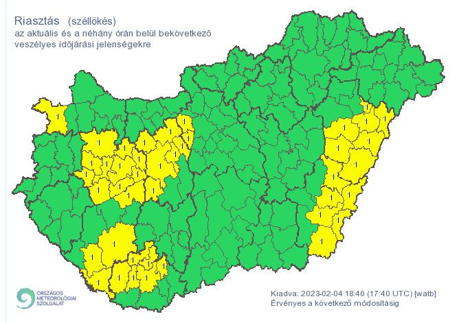 A meteorológiai szolgálat a honlapján a veszélyjelzésben azt írta, az északnyugati, északi szél fokozatosan veszít az erejéből, de estig még több helyen várható óránkénti 70-80 kilométeresnél erősebb széllökés. Erősen viharos – 90, esetleg 100 kilométeresnél erősebb – szélrohamok még legfőképp a Dunántúli-középhegységben, a Balaton térségében és a Mecsek környékén lehetnek, de már itt is egyre inkább megszűnő, csillapodó jelleggel.