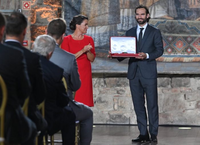 Szilágyi Áronról a köztársasági elnök kiemelte a Stipendium Peregrinum programhoz való csatlakozását. Mint mondta, Szilágyi Áron vállalta, hogy személyesen támogatja, segíti a fiatal tehetségeket, amit ő maga is megkapott. Példamutató abban is, ahogy Fair Play-díjasként az ellenfeleivel bánik, amilyen tisztelettel fordul a másik felé.