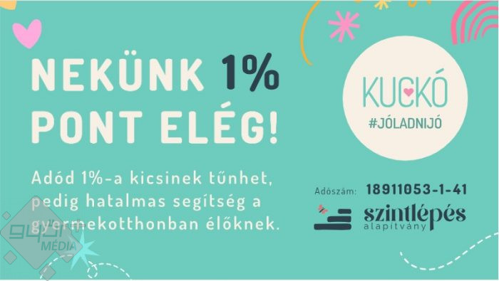 A személyi jövedelemadó 1%-ának felajánlásáról évről-évre rengetegen megfeledkeznek: 10 adózóból mindössze 4 rendelkezik adója 1%-áról valamely fontos társadalmi ügyet támogató, nonprofit szervezet javára. A Kuckó Program és a Szintlépés Alapítvány a „Nekünk 1% pont elég!” című kampányban arra hívja fel a figyelmet, hogy a legapróbb összeg is hatalmas segítség lehet a gyermekotthonban élőknek.