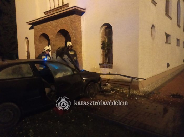 A templom falának hajtott, majd kigyulladt egy személyautó vasárnap este Győrújfalun a Mártírok utcában. A győri hivatásos tűzoltók a lángokat gyorsan elfojtották. Az autóban ülő két ember könnyebben megsérült a balesetben.