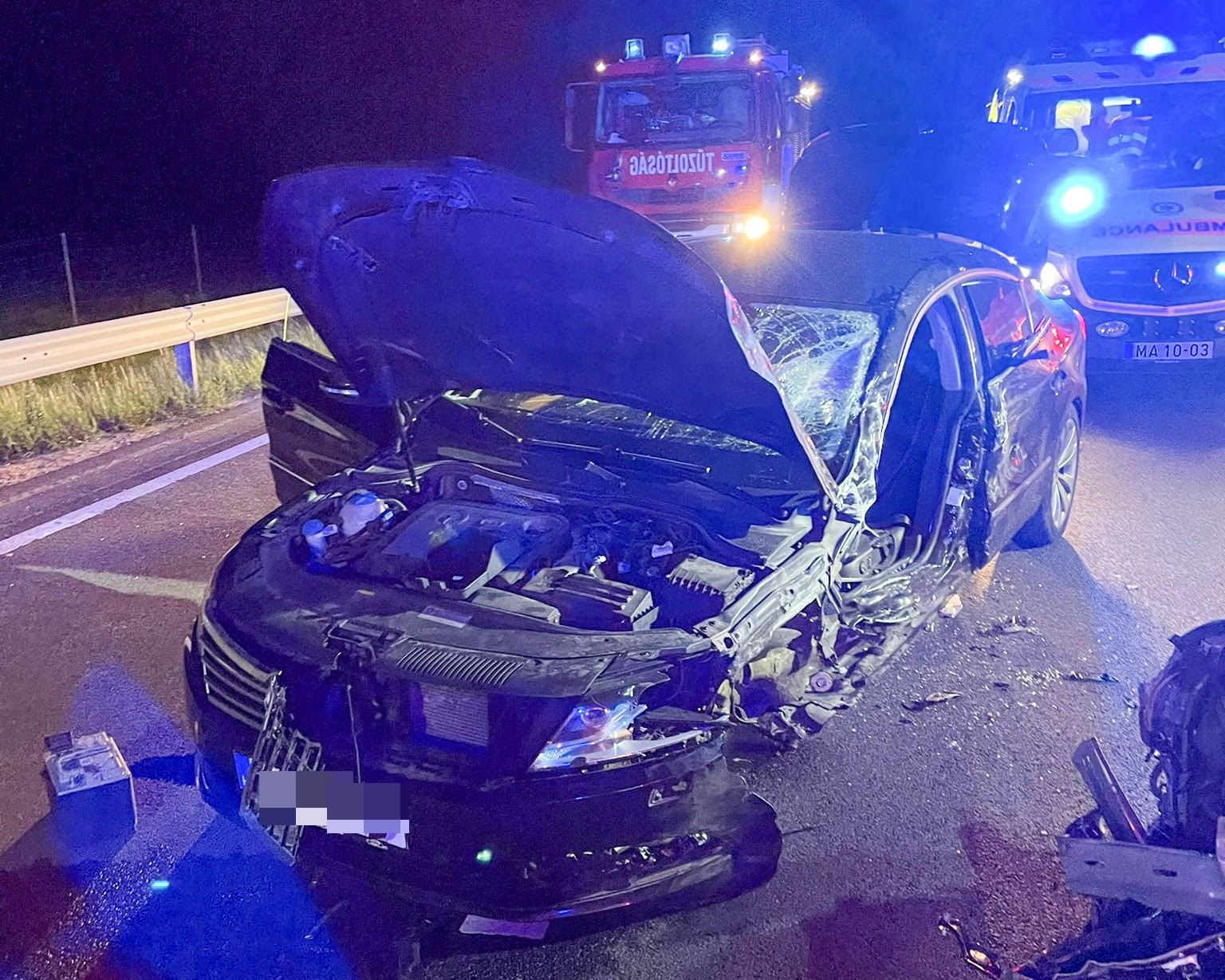 Információink szerint a Volvo idős vezetője tévedésből rossz irányba hajtott fel az útra, ezért ütközött szemből a Volkswagennel. Szerencsére utóbbi sofőrje (bár épp előzni készült és az előzendő autó takarta a kilátást) még éppen időben észlelte a veszélyt és el tudta rántani a kormányt, így megúszták a frontális karambolt, és a négy részvevő “csupán” könnyebben sérült.