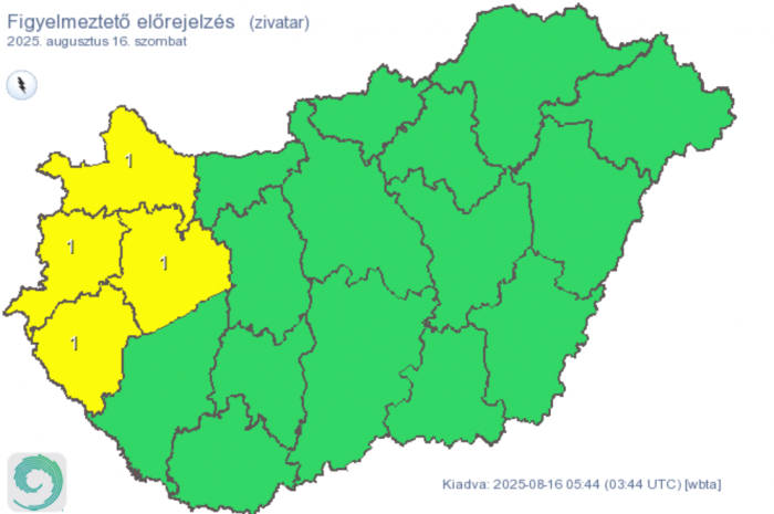 Győr-Moson-Sopronra, másodfokú, narancssárga hőségriasztás van érvényben, a napi középhőmérséklet e szerint 27 fok felett alakulhat. Érdekesség, hogy Nyugat-Magyarországon a hőségriasztás mellett zivatarok miatt is figyelmeztetést adtak ki.