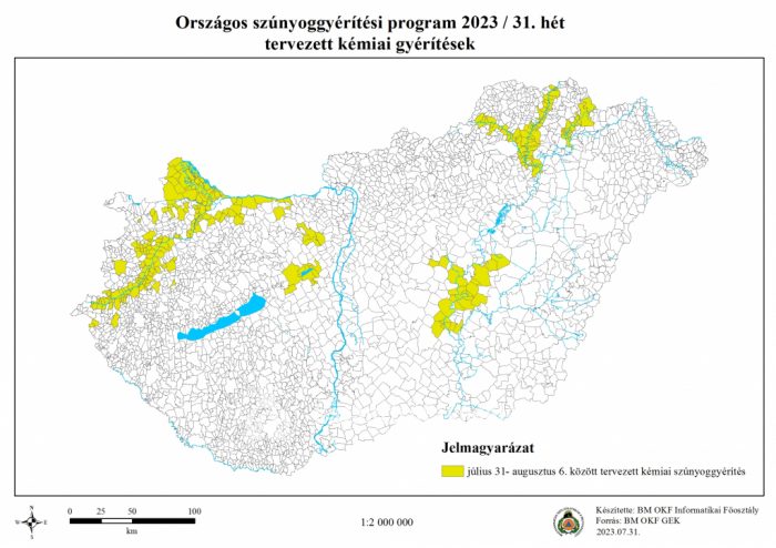 A héten Bács-Kiskun, Borsod-Abaúj-Zemplén, Fejér, Győr-Moson-Sopron, Jász-Nagykun-Szolnok, Komárom-Esztergom, Pest, Vas és Zala vármegyében, összesen 274 településen, 59 ezer hektáron lesz szúnyoggyérítés.
