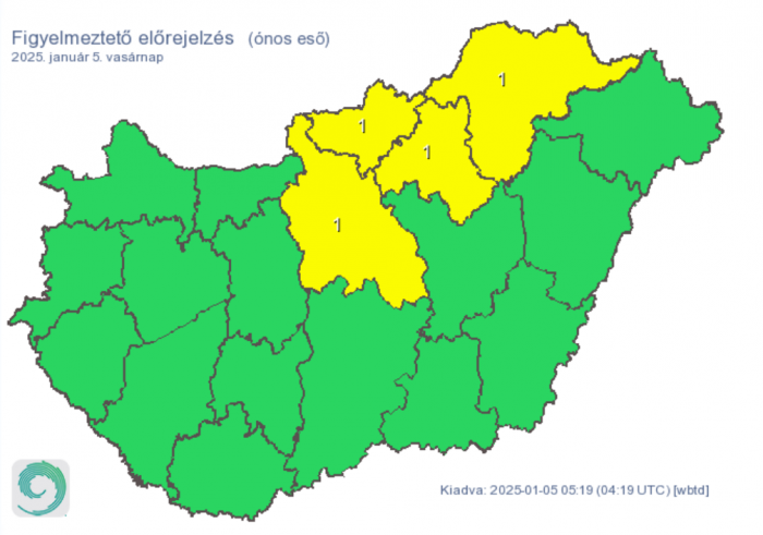 Az ország északi felén többfelé előfordulhat kisebb vegyes halmazállapotú csapadék: hó, havas eső, ónos eső, eső egyaránt.