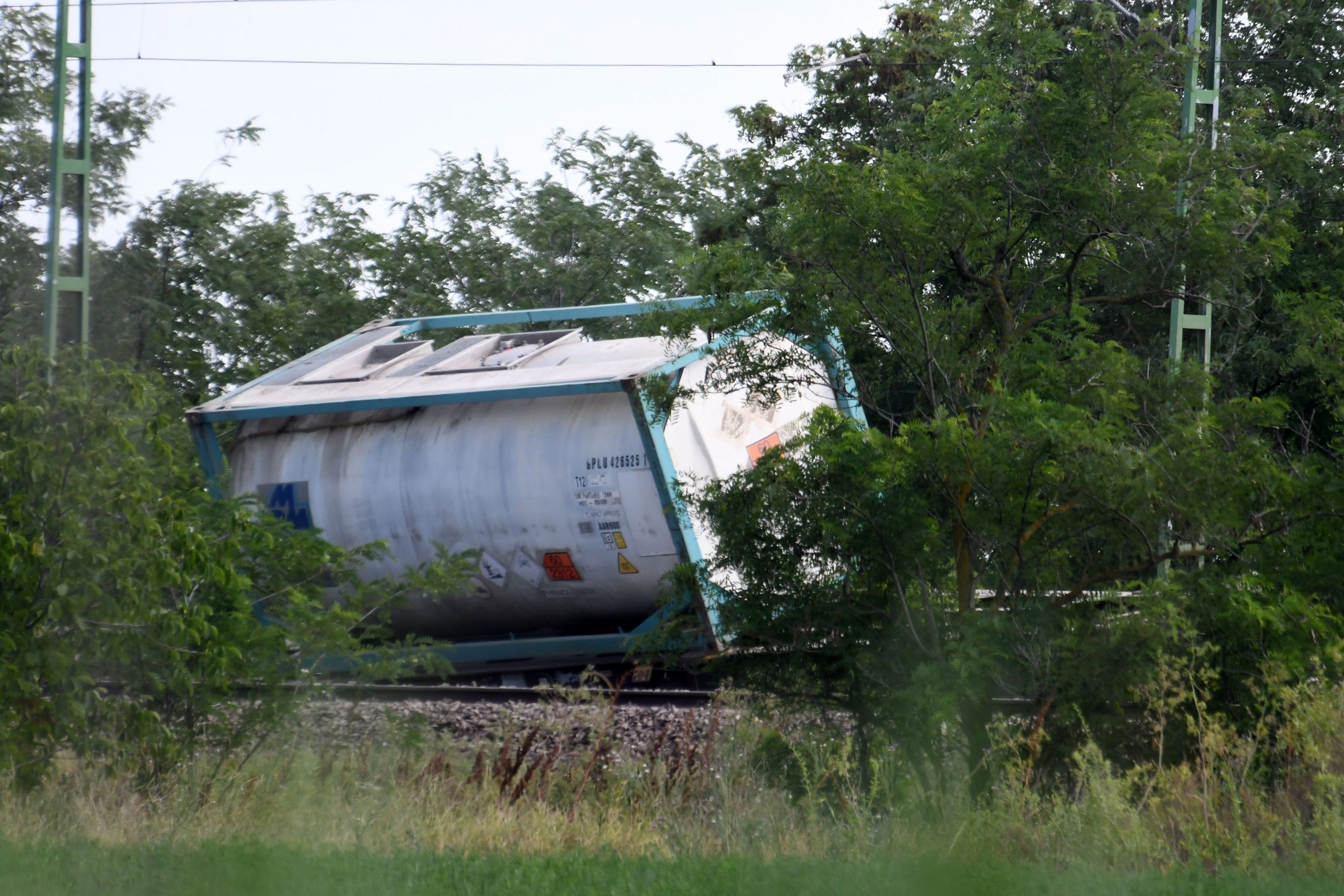 A katasztrófavédelem az MTI-vel azt közölte, hogy egy vasúti átkelőnél történt a baleset. A felborult vagonok közül kettő környezetre veszélyes anyagnak minősülő, folyékony rovarölőszert szállított – írták.