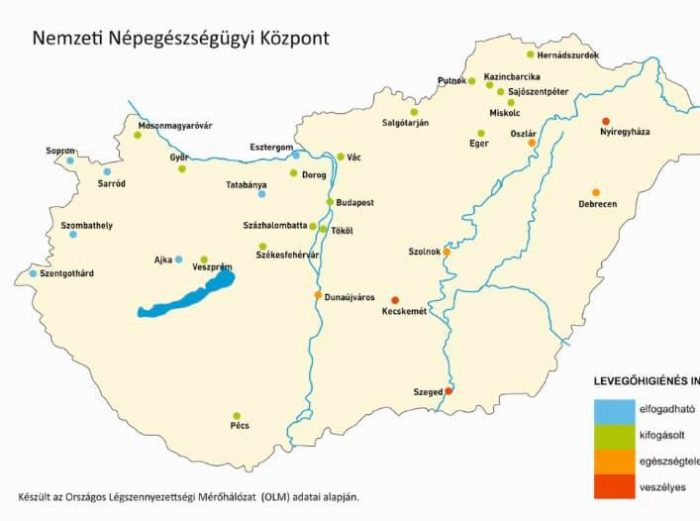 Veszélyes volt a levegő minősége Kecskeméten, Nyíregyházán és Szegeden a tegnapi nap (2019.10.25.) folyamán. Négy településen egészségtelen (Debrecen, Dunaújváros, Oszlár, Szolnok), míg további tizenhét településen kifogást volt a levegőminőség.