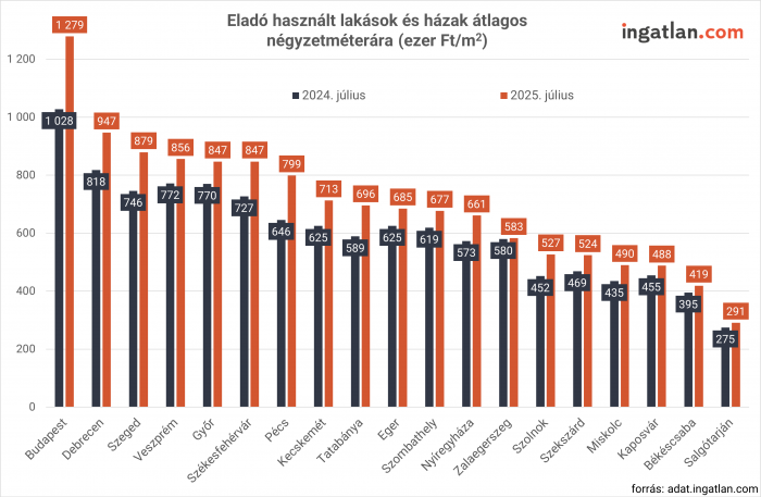 Az alföldi, illetve a keleti régióban az ipari beruházások és a kedvezőbb kiinduló árak fűtik a keresletet. Érdekesség, hogy a vármegyeszékhelyek között a legdrágább lokációnak számító debreceni és szegedi lakáspiacokon történt a legnagyobb regionális drágulás. Debrecenben a használt eladó lakóingatlanok átlagos négyzetméterára 940 ezer forint, míg Szegeden 879 ezer. Ezt az árszintet közelíti Győr, Székesfehérvár és Veszprém 847-856 ezer forinttal. A legolcsóbb vármegyeszékhely Salgótarján és Békéscsaba 279 ezer és 419 ezer forintos átlagárszinttel.