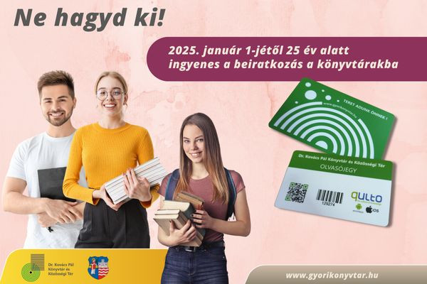 Január 1-jétől a 25 év alattiak (csakúgy, mint a 70 év fölöttiek) díjmentesen iratkozhatnak be a könyvtárakba!