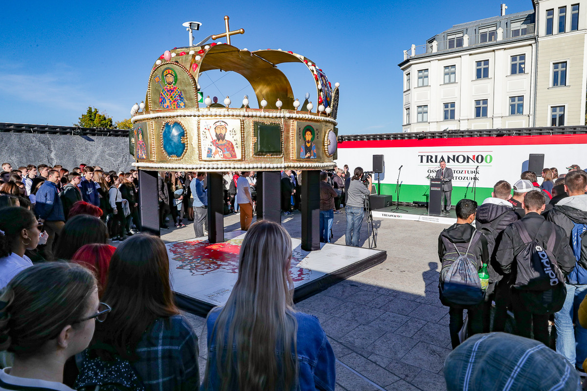 A trianoni béke következményeit és az államiság megőrzéséért folytatott küzdelmet bemutató vándorkiállítás nyílt szerdán a Dunakapu téren. Az emlékező tárlaton látható többek mellett a Szent Korona nagyméretű másolata, a Teleki Pál-féle „vörös térképet” ábrázoló talapzaton.