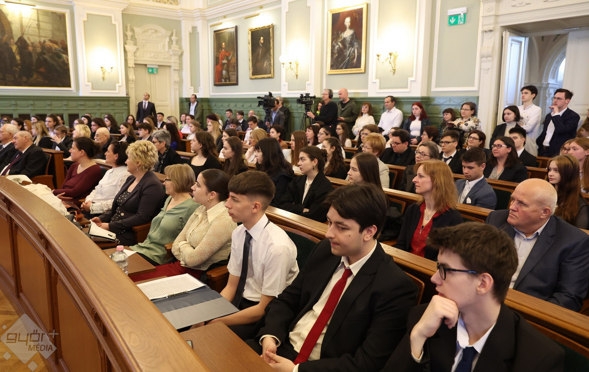Vasárnap reggel a győri városháza dísztermében ünnepélyes eredményhirdetéssel és díjkiosztóval zárult az 57. Kazinczy-verseny kárpát-medencei döntője. A másfél száz résztvevőből húsz gimnáziumi és tizenöt szakképző iskolás diák térhetett haza Kazinczy-éremmel. Megyénkből Póczik Antónia, a Kazinczy Gimnázium, és Gál Gréta Ramóna, a mosonmagyaróvári Bolyai János Technikum tanulója érdemelte ki a rangos elismerést. További húsz diák az Anyanyelvápolók Szövetsége különdíjával gazdagodott, köztük Radich Kornélia, a mosonmagyaróvári Kossuth Gimázium, valamint Kovács Bálint, a győri Bercsényi Miklós Technikum tanulója.