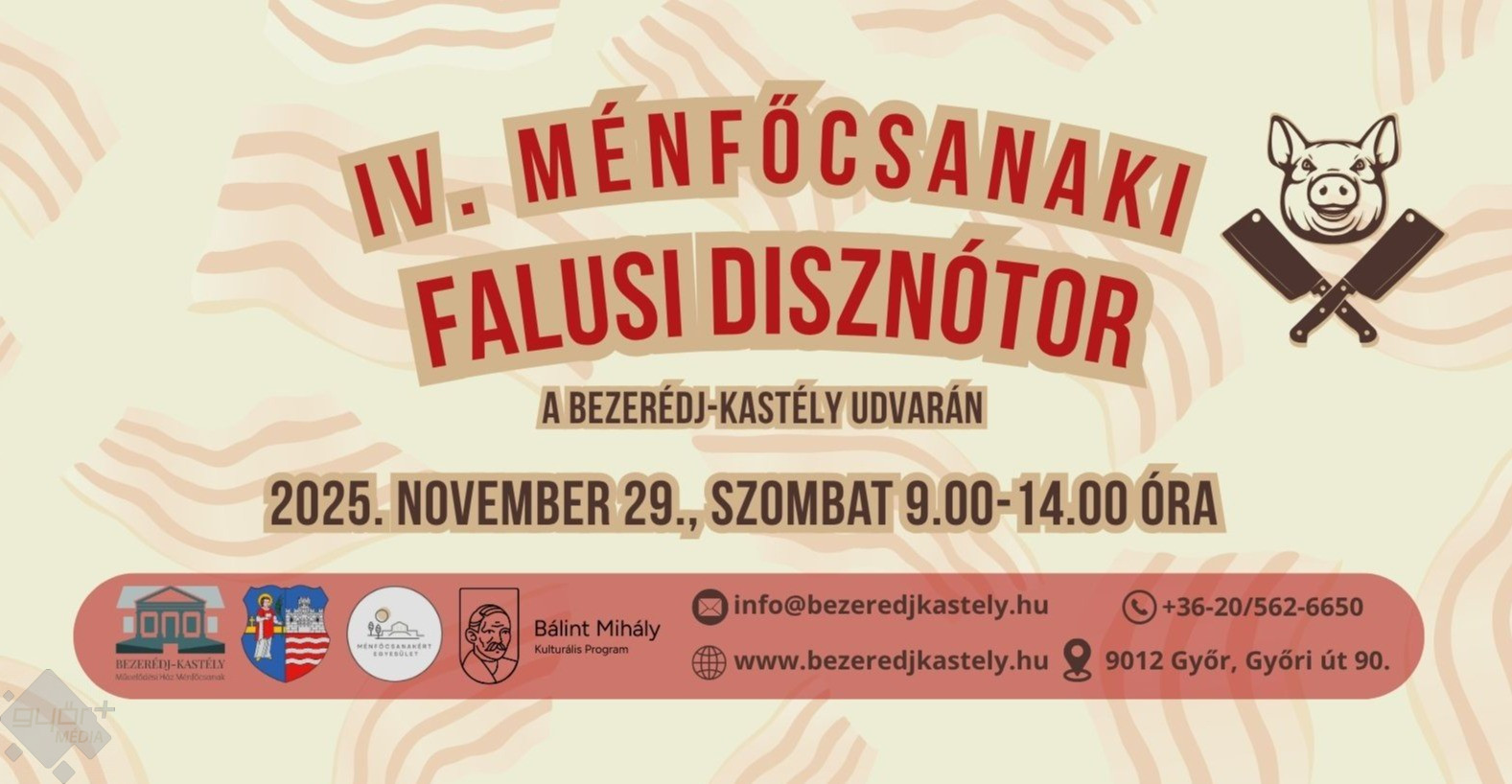 Jó időben, és igazán jó hangulatban telt a III. Ménfőcsanaki Falusi Disznótor a Bezerédj-kastély udvarában. A disznóvágás lépései mellett a kilátogatók a friss disznótoros ételeket is megkóstolhatták, a kisebbeket légvár, ügyességi feladatok, valamint kézműves asztalok is várták.