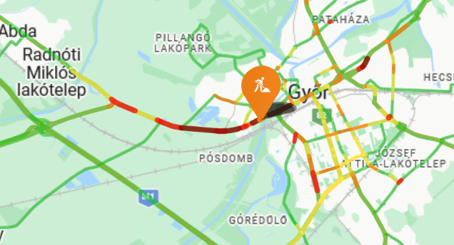 Az 1. számú főút és a 85. számú főút kereszteződésétől a belvárosig hatalmas a torlódás van a városból kifelé vezető oldalon Mosonmagyaróvár felé.