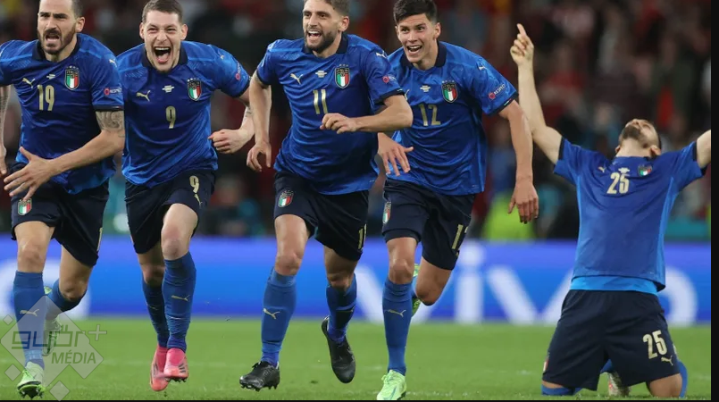 Elsőként az olasz válogatott jutott döntőbe a részben budapesti rendezésű labdarúgó Európa-bajnokságon, miután az első elődöntőben kedden 1-1 után tizenegyespárbajban 4-2-re legyőzte az ugyancsak társházigazda spanyol csapatot a londoni Wembley Stadionban.