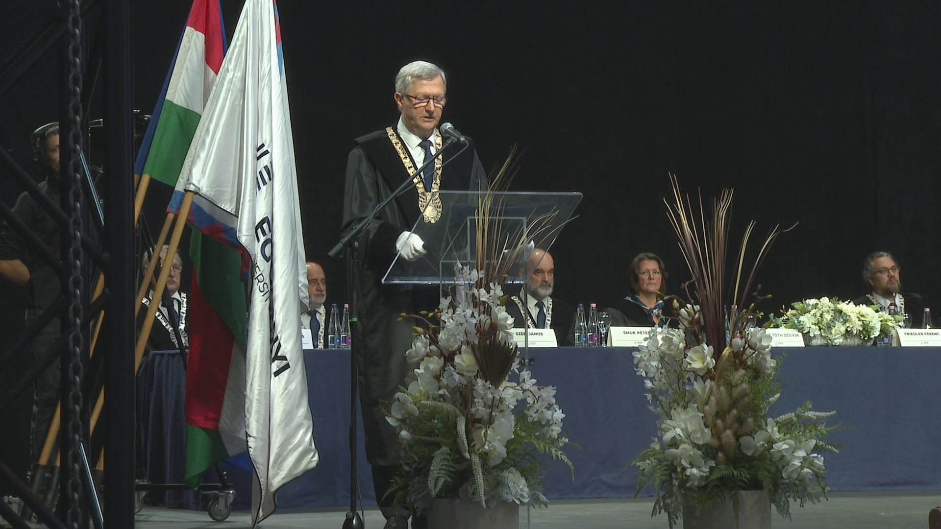 Az általános és középiskolák után a Széchenyi István Egyetemen is megkezdődik a héten a tanítás, ez alkalomból ünnepélyes évnyitót tartottak hétfőn az Egyetemi csarnokban.
