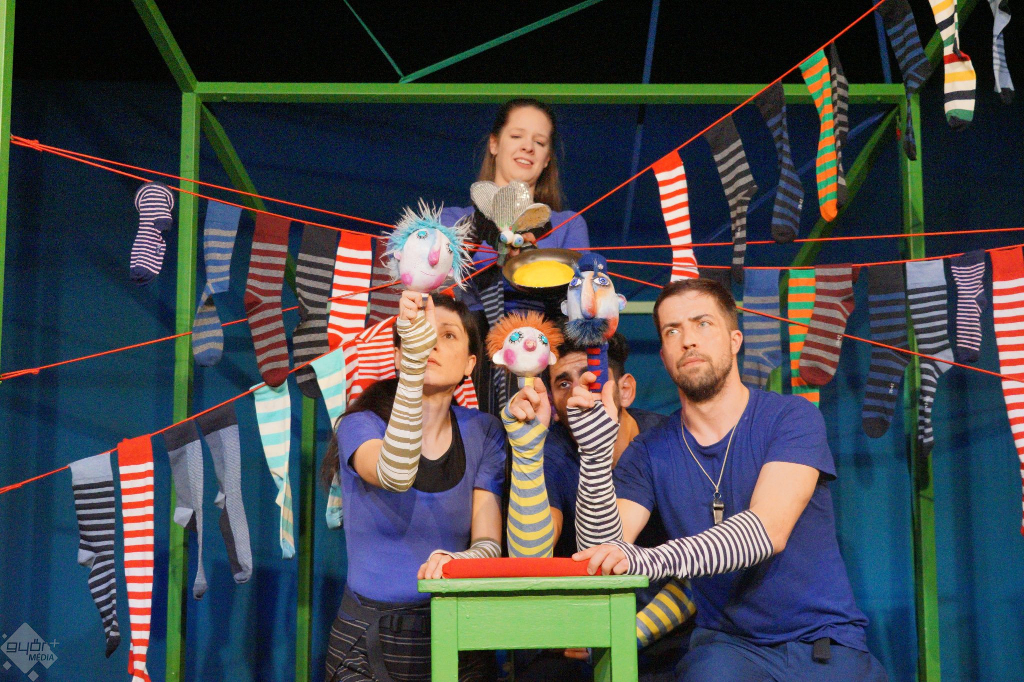 Szilvakék ruhába öltözött zenészek muzsikálnak a Vaskakas Bábszínház színpadán vasárnap óta. A társulat az elmúlt hétvégén tartotta legújabb előadásának bemutatóját, mely Gyigyimókáról szól, de a történetben megjelenik a kisfiú apja és anyja is, sőt, feltűnik egy éhes légy, egy szerencsétlen szamár, egy rendőr, egy kóró és még egy kismadár is…