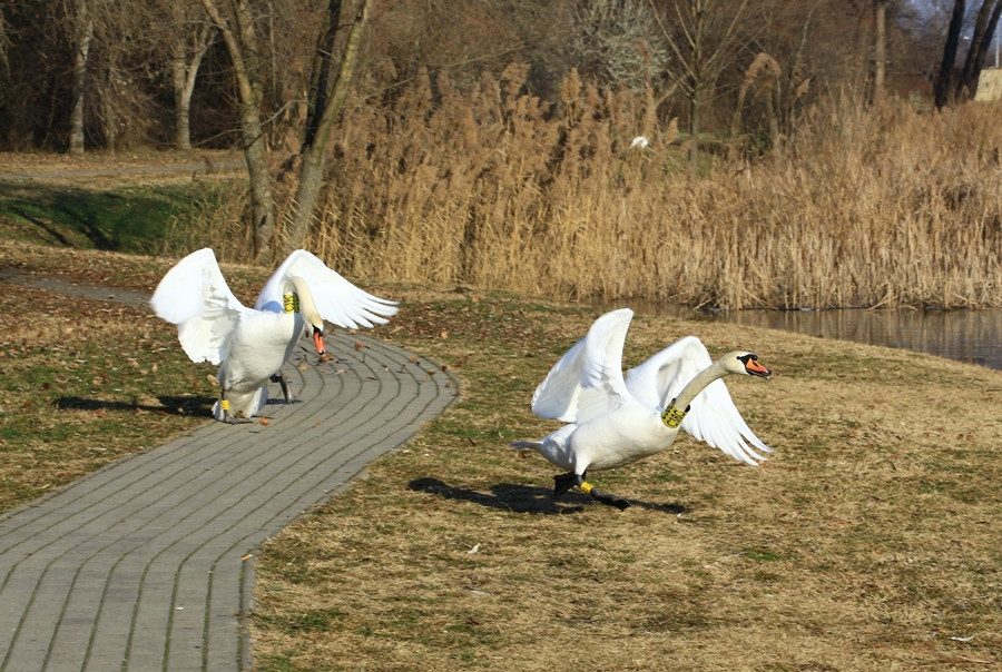 Befagyott a Szabadhegyi és az Adyvárosi-tó is, a hattyúcsalád a parton próbál biztonságos menedéket keresni, élelmet nem fogadnak el.