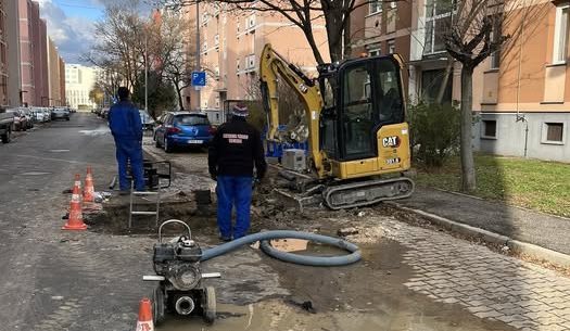 Csőtörés történt a Stadion utca 2. és 4. szám előtt, Győrben.