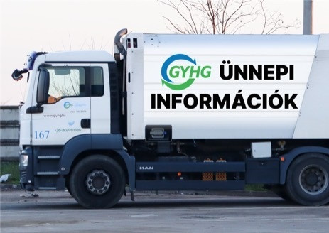 A GYHG Győri Hulladékgazdálkodási Nonprofit Kft. tájékoztatja az érdeklődőket, hogy a cég működési területén a hulladékszállítás december 13-án, áthelyezett szombati munkanapon és minden további napon változás nélkül történik. A szolgáltatással érintett címeken a megszokottak szerint reggel hat órára kérik kitenni ürítésre a hulladékgyűjtő edényeket.