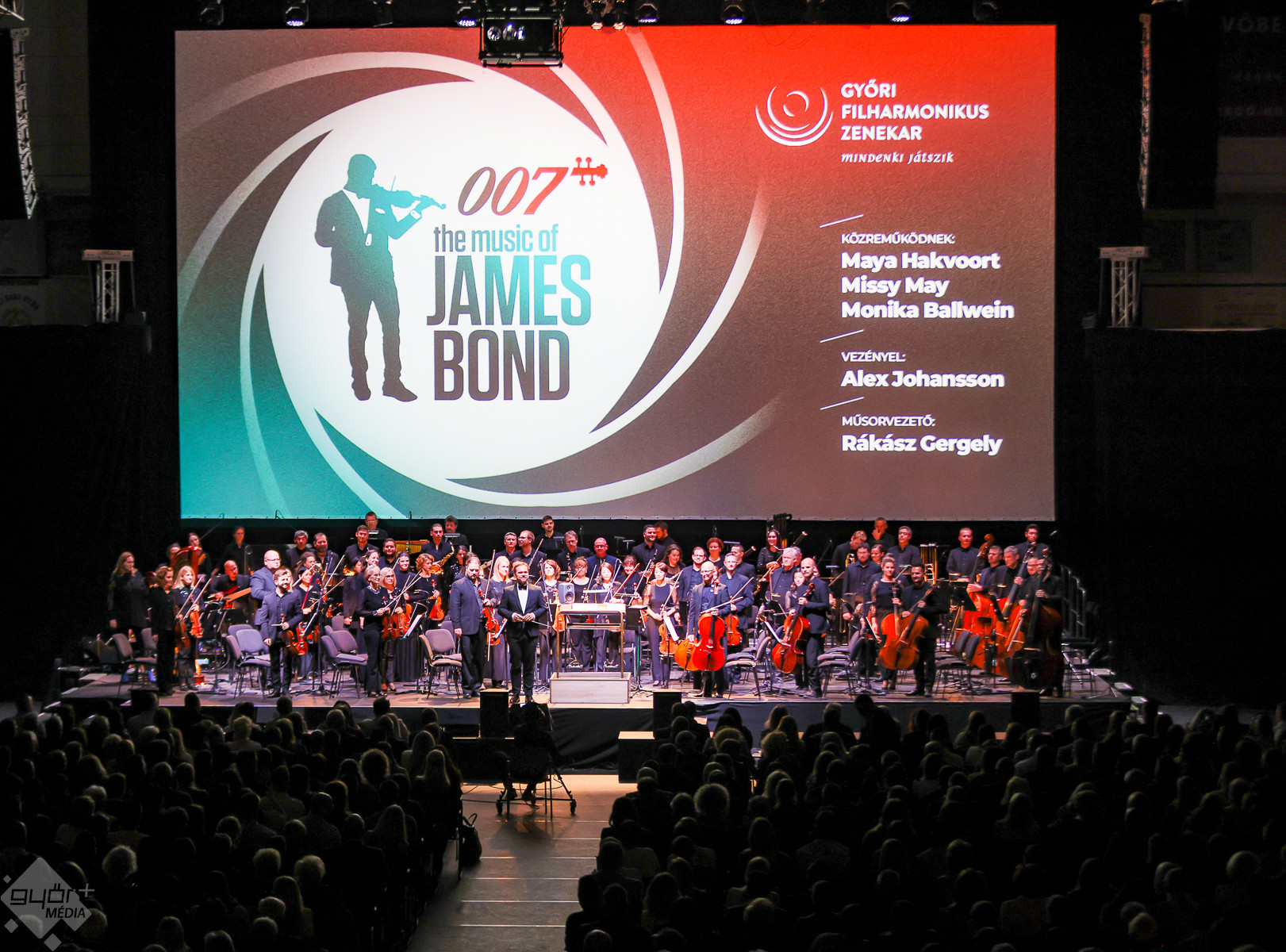 Megtelt az Egyetemi Csarnok, ismét közönségsikert aratott a Győri Filharmonikus Zenekar filmzenei estje. Csütörtökön a James Bond-mozik jól ismert dallamaiból, világslágereiből válogatott három kitűnő énekesnő közreműködésével. Az est karmestere a visszatérő Alex Johansson volt, műsorvezetője az ismert koncertorgonista, Rákász Gergely. A filmzenei előadáson nemcsak zenei élményt kapott a nagyérdemű, az óriás kivetítőkön felbukkantak a 007-es ügynökök is.