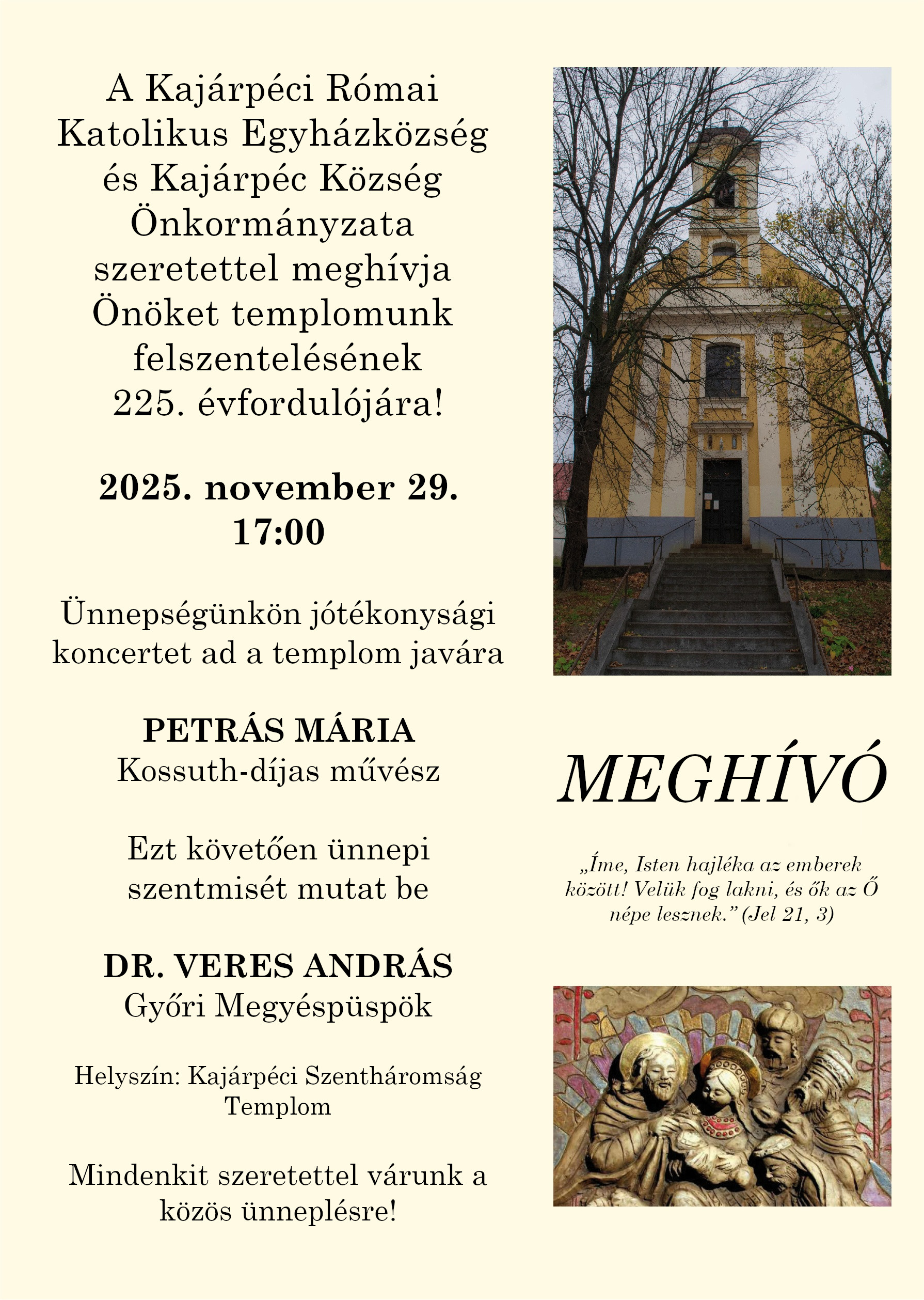 Jótékonysági koncert és ünnepi szentmise a Kajárpéci Szentháromság Templom 255. évfordulóján.