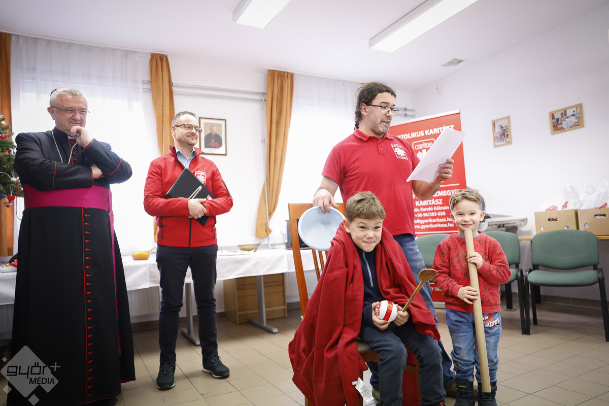 Gyerekek karácsonyára hívta az általa támogatott családok apróságait a Győri Egyházmegyei Karitász. Az ünnepi alkalomra ellátogatott dr. Veres András megyéspüspök is.