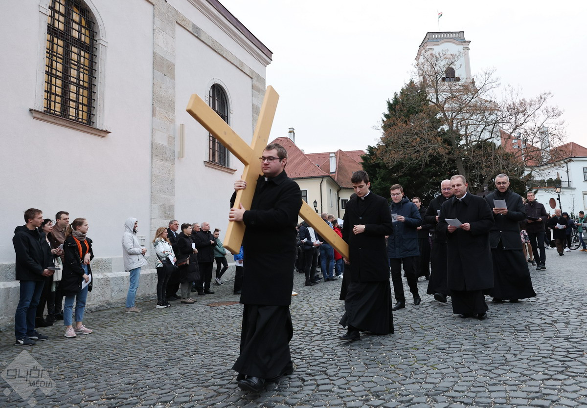 Jézus kereszthalálának napján, Nagypénteken idén is több száz hívő járta körbe a győri keresztutat. A menet hagyományosan a Káptalandombról indult.