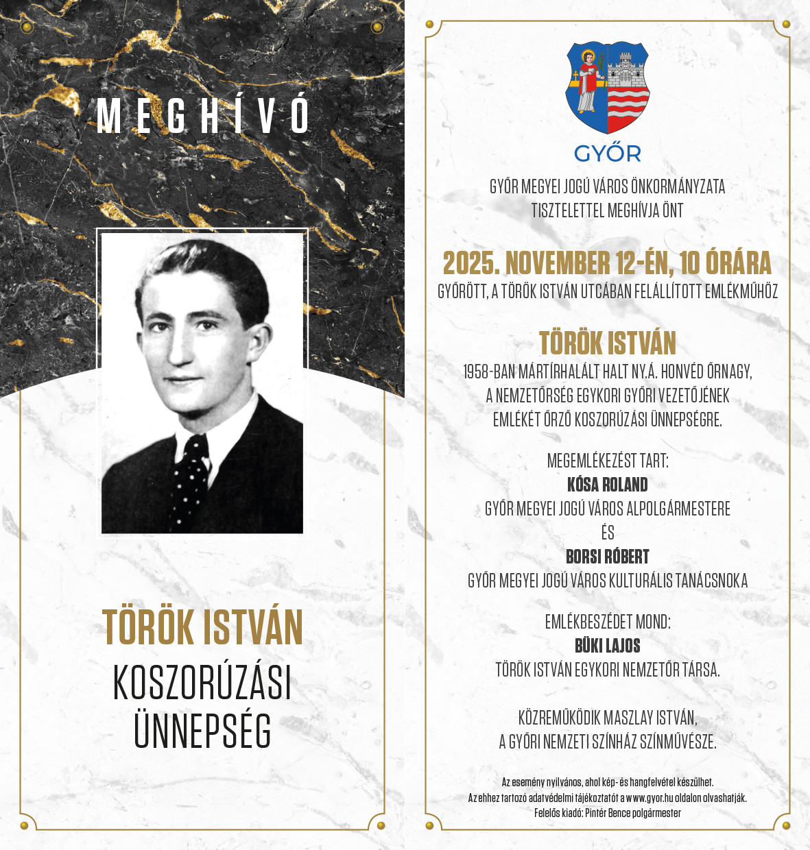 TÖRÖK ISTVÁN 1958-ban mártírhalált halt ny.á. honvéd őrnagy, a nemzetőrség egykori győri vezetőjének emlékét őrző koszorúzási ünnepség.