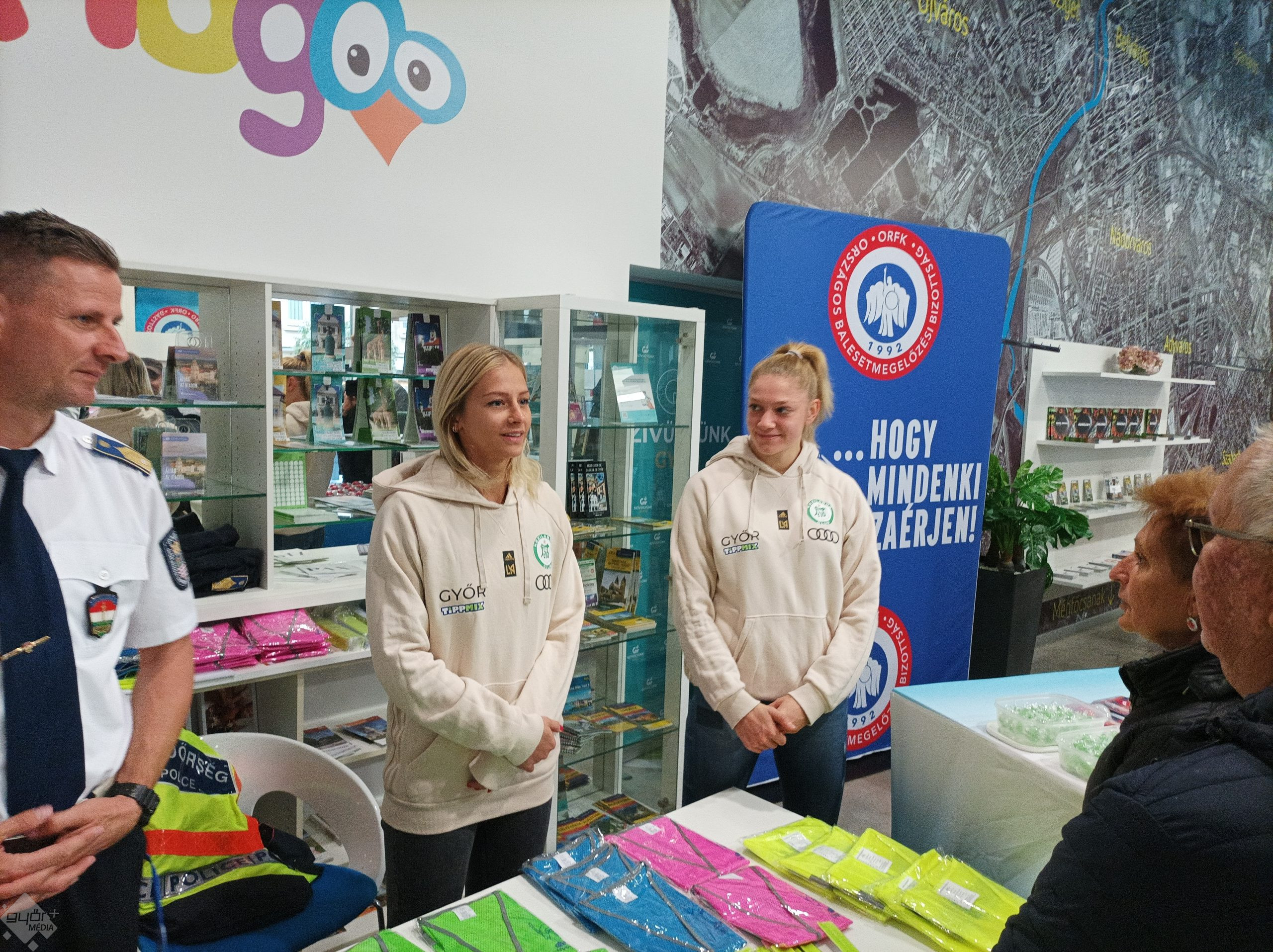 Október 17-én indult és december 4-ig tart az Országos Rendőr-főkapitányság Baleset-megelőzési Bizottságának Látni és Látszani elnevezésű országos akciója. Ebben az időszakban a szakemberek az őszi-téli időjárás okozta vezetésbiztonsági kihívásokra hívják fel nem csak az autósok, de a kerékpárosok figyelmét is. A megyei program keretében pénteken a Belvárosban osztottak fényvisszaverő mellényeket, karpántokat, kerékpáros prizmákat és lámpa szetteket a rendőrök, akiknek az Audi ETO sztárkézilabdázói is besegítettek az akcióban.