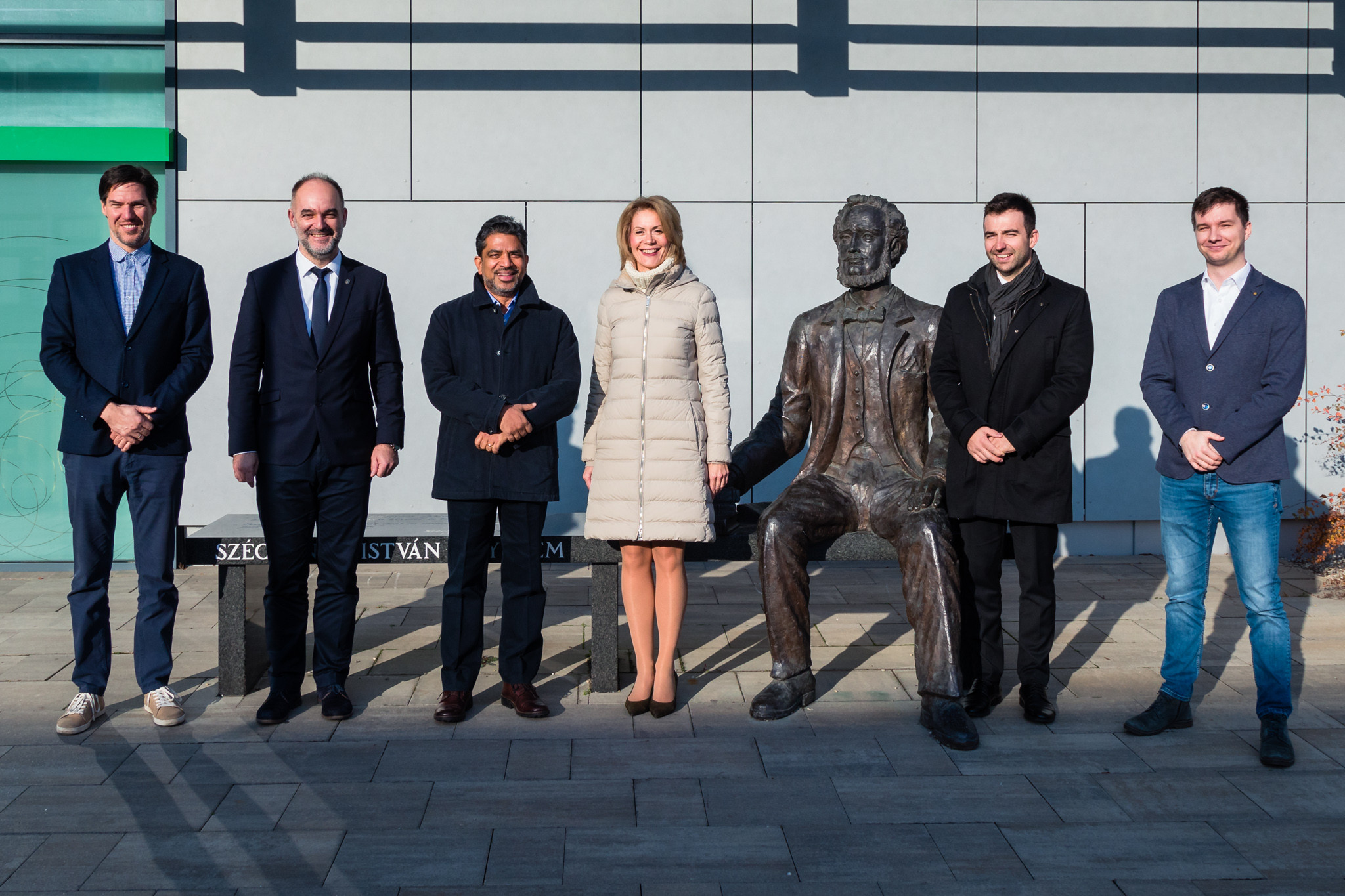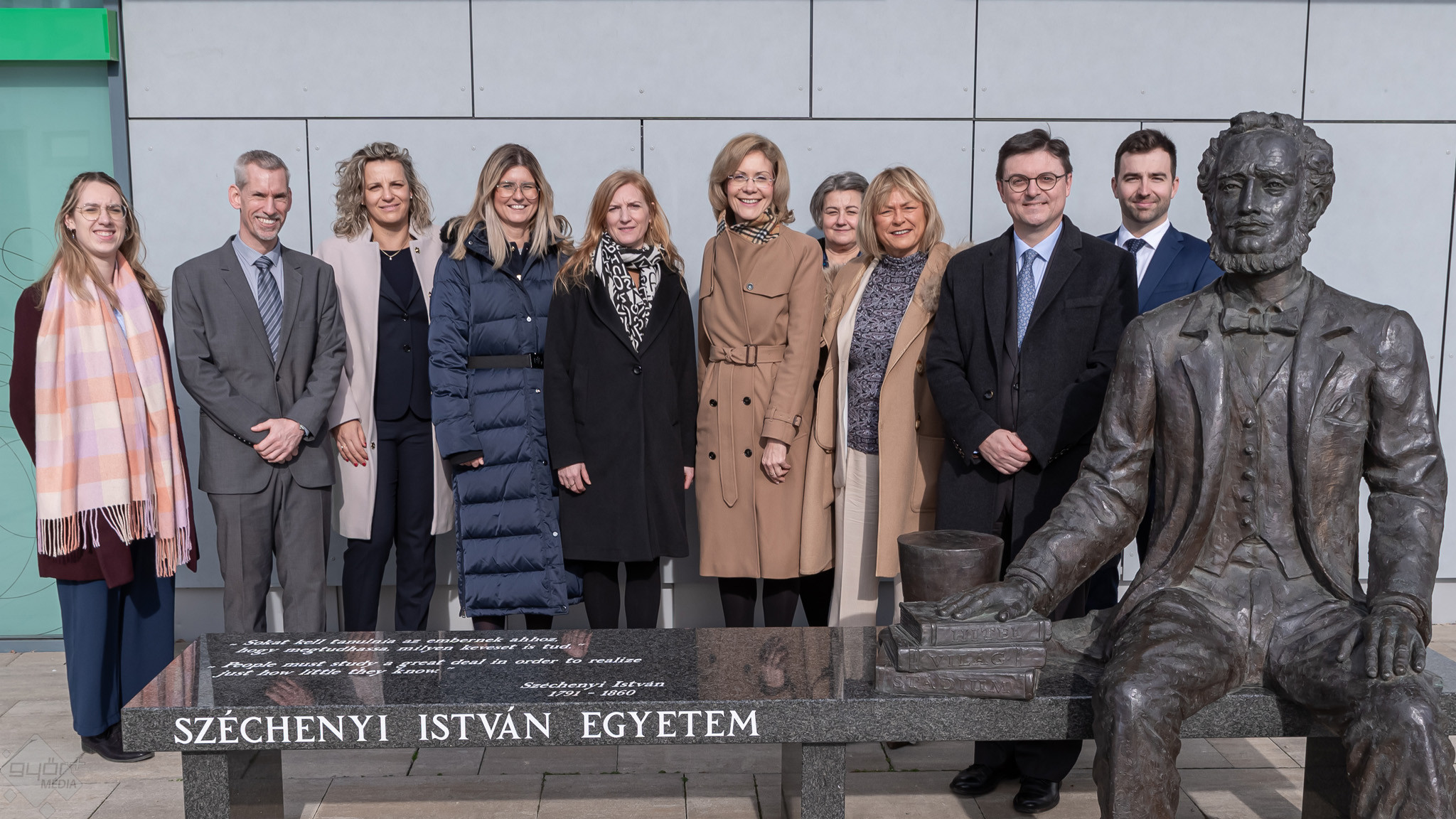 Huszonöt állam magyarországi nagykövetségének vezetői, képviselői, köztük tíz nagykövet látogatott a Széchenyi István Egyetemre, hogy megismerkedjenek az intézmény képzési és kutatás-fejlesztési tevékenységével, fejlett infrastruktúrájával, nemzetközi kapcsolatrendszerével. A vendégeket új innovációs parkjában, a modern kockában fogadta a campus nevében dr. Lukács Eszter.