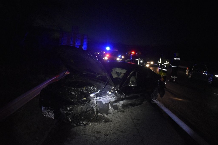 A belső szalagkorlátnak csapódott egy személykocsi az M1-es sztráda Budapest felé vezető oldalán vasárnap hajnalban.