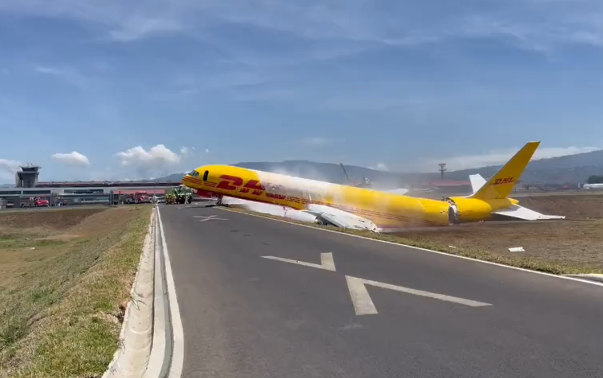 Kényszerleszállás közben ketté tört egy teherszállító repülőgép Costa Ricában.