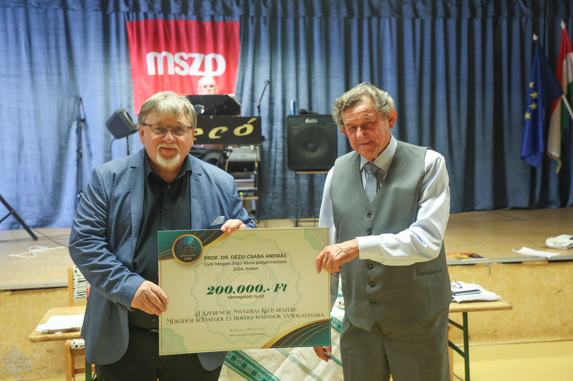 Remek hangulatban, vidám dalok és a szemekbe sokszor könnyeket csaló nóták társaságában telt a kedd este a győrszentiváni Aranyeső Nyugdíjas Klub tagjai számára, akik gyakorta találkoznak egymással. A mostani eseményen dr. Dézsi Csaba András polgármester is tiszteletét tette, s támogatást is átnyújtott a szépkorúaknak.