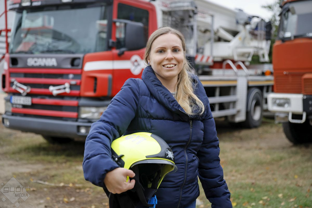 Mindig mosolygós és jókedvű, de ha jön a riasztás, akkor kétdiplomás édesanyaként vezeti a tizenöt tonnás szerkocsit. Ő Kertai Melinda, a Győrszentiváni Önkéntes Tűzoltó Egyesület elnöke.