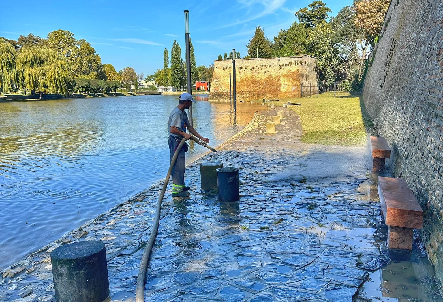A Rábán érkezett árhullám elvonulását követően Győr-Szol Zrt. Városüzemeltetési és Kivitelezési Igazgatóságának munkatársai azonnal nekiláttak a többfunkciós padka takarításának. A munkát a legforgalmasabb szakaszokon kezdték, gépekkel és kézi eszközökkel tisztították a rakparti sétálóutakat.