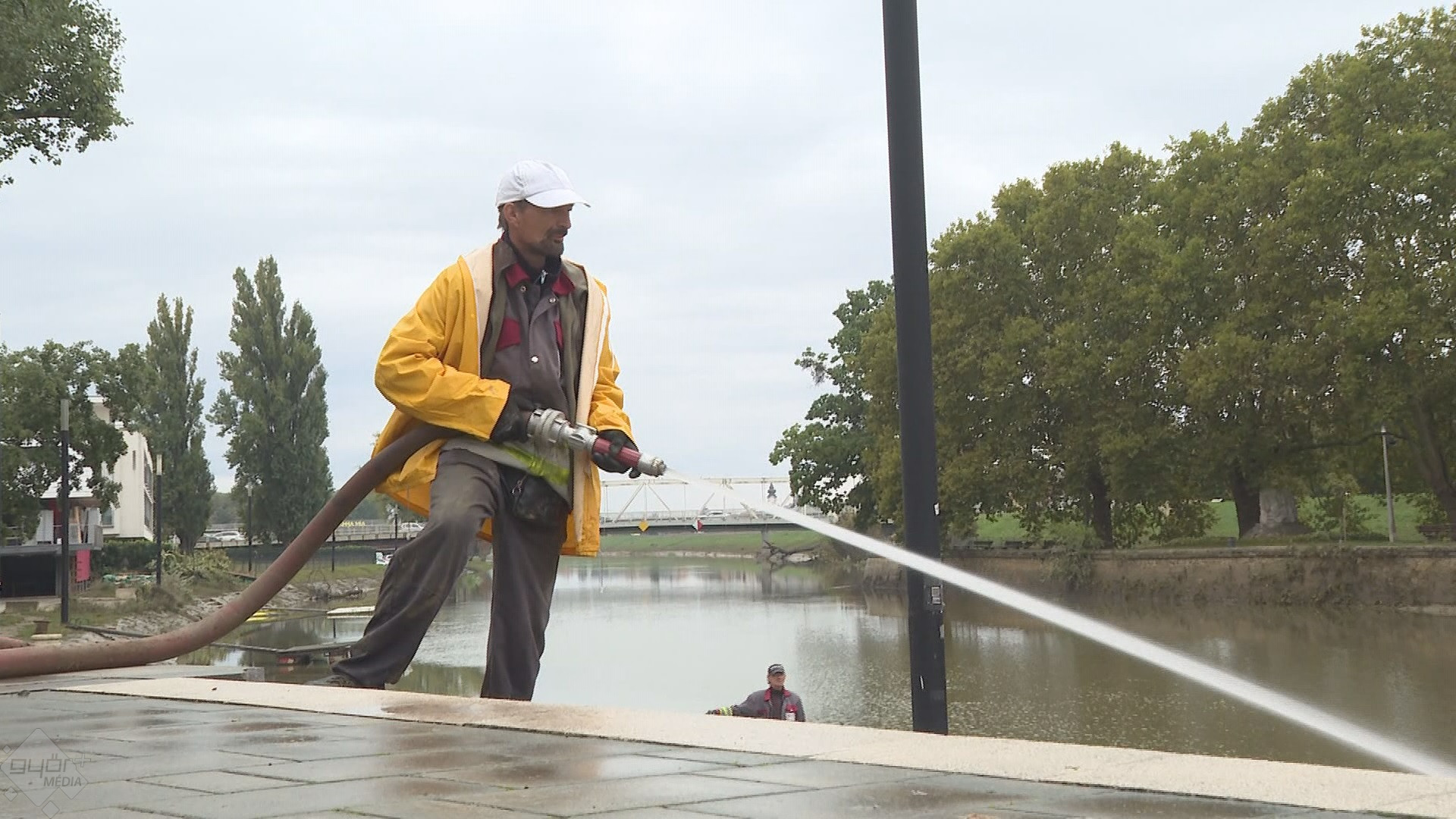 Levonulóban az árvíz, jó ütemben apadnak a folyók. A Mosoni-Duna és a Rába győri szakaszain hétfő óta folyamatosan takarítják a rakpartokat a Győr-Szol munkatársai.