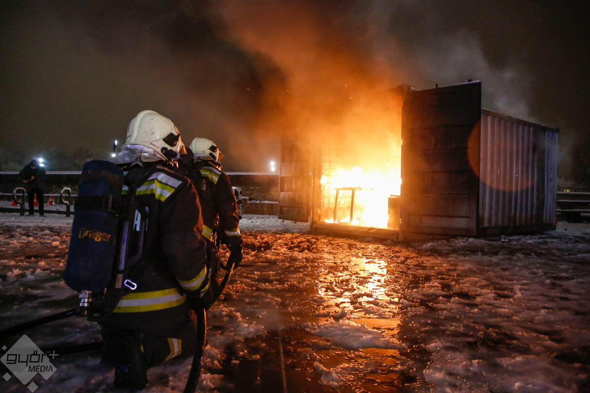 Látványos lakástűz szimulációs bemutatót tartott ma 5 órakor a Dunakapu téren a Győr-Moson-Sopron Megyei Katasztrófavédelmi Igazgatóság.