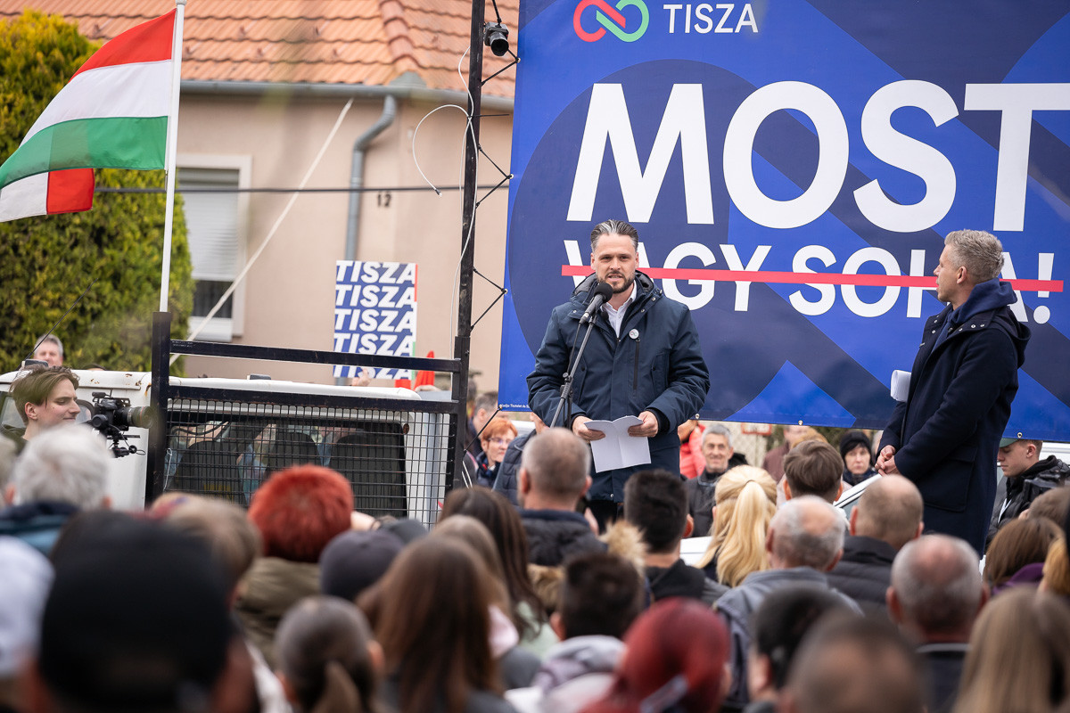 Országjárása egyik állomásaként Nyúlon tartott szombaton délután lakossági fórumot Magyar Péter, valamint a Tisza párt országgyűlési képviselőjelöltje, Néher András.