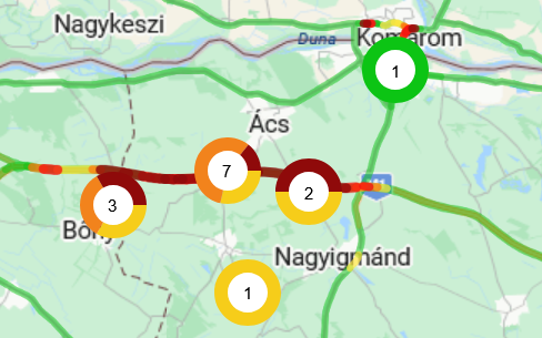 Súlyos baleset történt az M1-es autópályán Budapest irányába, Tata térségében, a torlódás 10 km-es. Az autósokat arra kérik, hogy térjenek le a 85-ös csomópontnál, és Nagyigmánd-Kocs-Tata-Tatabánya felé kerüljenek.