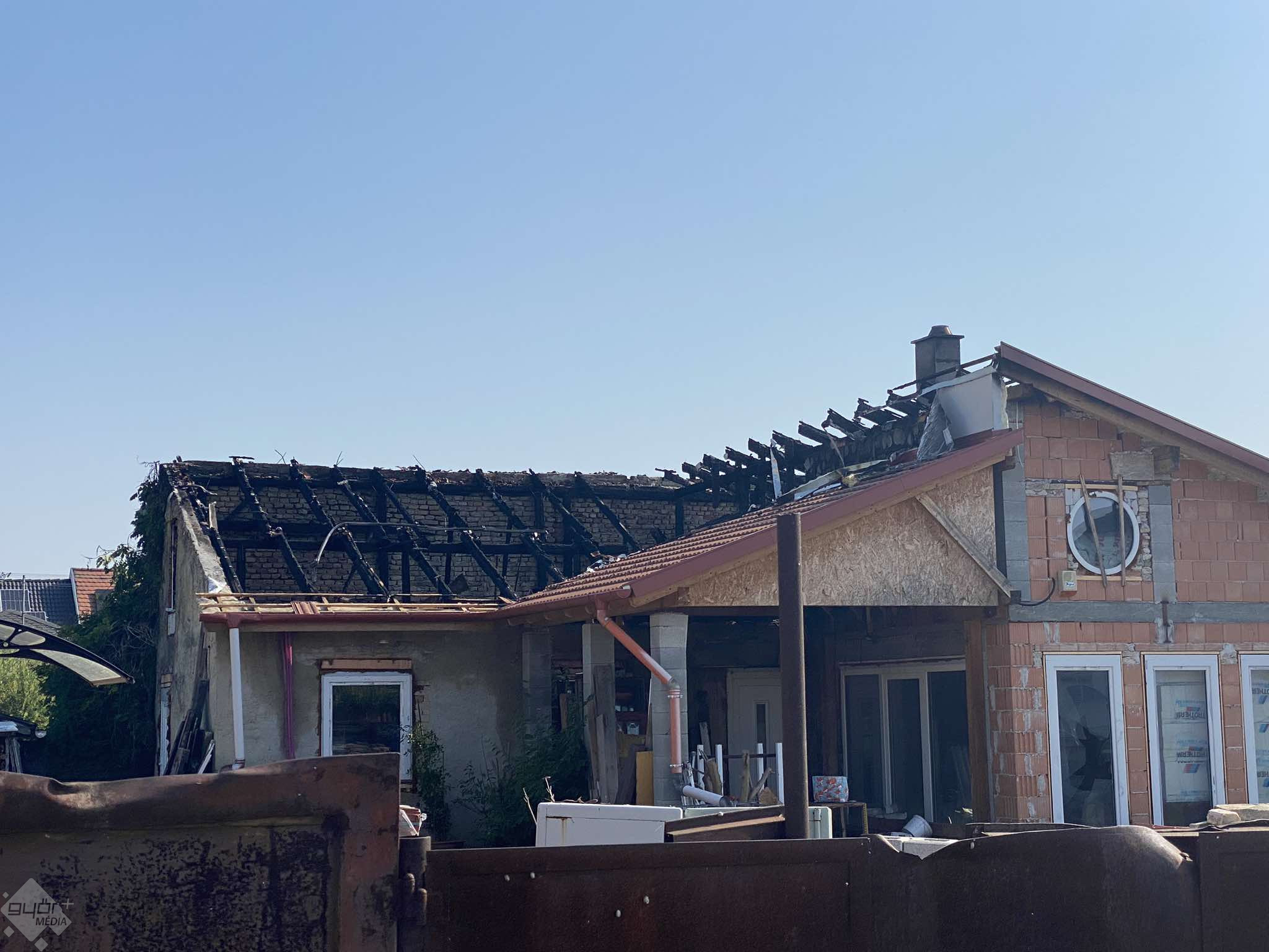 Mintegy száz négyzetméter alapterületű családi ház tetőszerkezete égett teljes terjedelmében Győrben, a Tulipán utcában.