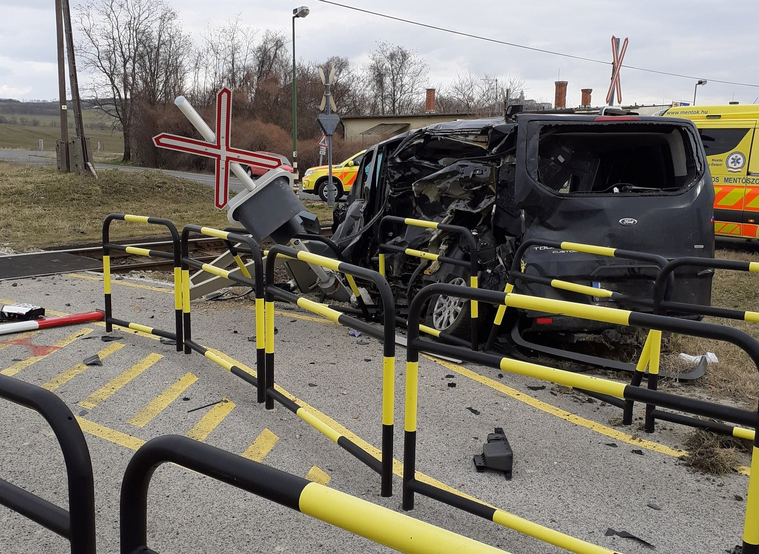 Összeütközött egy személyautó és egy Veszprém és Győr között közlekedő vonat Écs közelében, a 82122-es út 1-es kilométerénél.