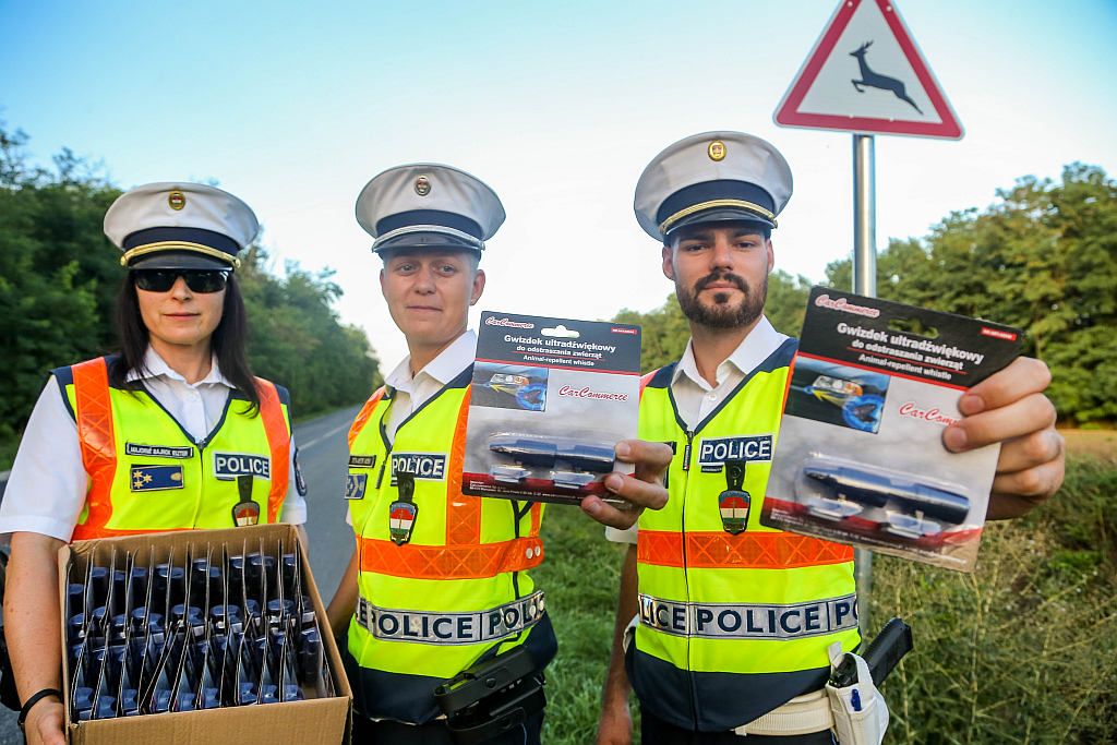 A Győri Rendőrkapitányság Közlekedésrendészeti Osztály munkatársai – hasznos tanácsok mellett – vadriasztó síppal ajándékozták meg az úton lévőket.