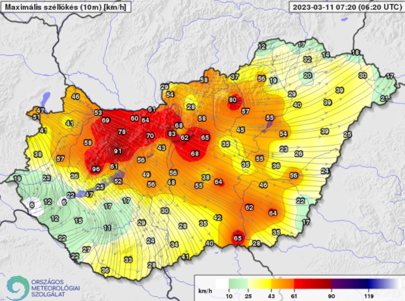 Viharos széllel vonul a hidegfront, folyamatosan érkeznek a hívások a katasztrófavédelemhez.