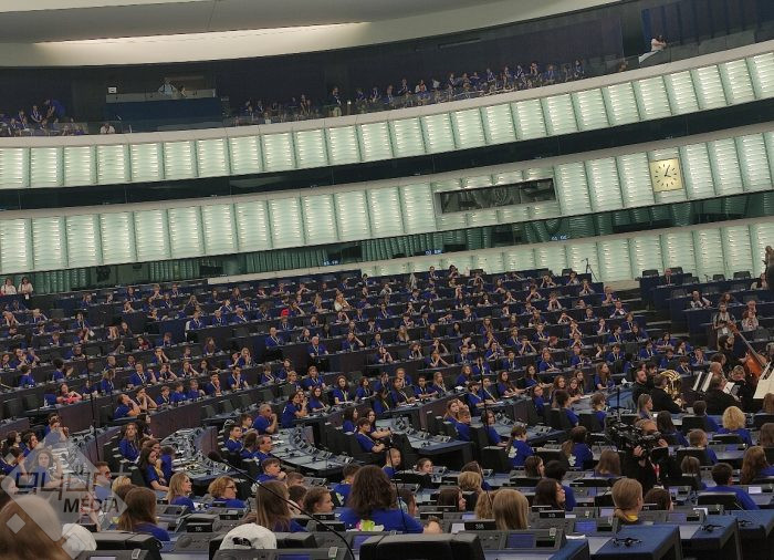Május 30., kedd. Délelőtt megnéztük az Európai Parlamentet, és kb. kettőkor bementünk az ülésterembe. Itt 30 perc alatt elpróbáltuk az összes dalt még egyszer. Aztán elkezdődött a műsor. Volt videókonferencia, szavazás és még egy űrhajóssal is beszélgethettünk, mindez párhuzamosan három nyelven: angolul, franciául és németül zajlott. Az egész délutánt felölelő program végére már mindenki elfáradt, de sikeresen előadtuk az előre megtanult dalokat. Felemelő érzés volt 1100 másik gyerekkel együtt énekelni.