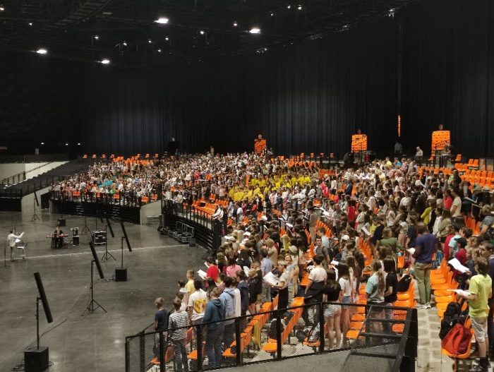 Május 29. hétfő Elmentünk próbálni másik 1100 gyerekkel Európa legnagyobb csarnokába a Zénith de Starsbourg-ba. Az egész napot próbával töltöttük, volt próba zongorával, volt zenekarral és szólóban. A szünetek is munkával teltek: táncosok tanítottak be nekünk egy flashmobot, változatos koreográfiával az Örömóda dallamára. A nap végén mindenki fáradtan tért haza.