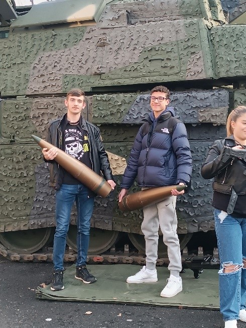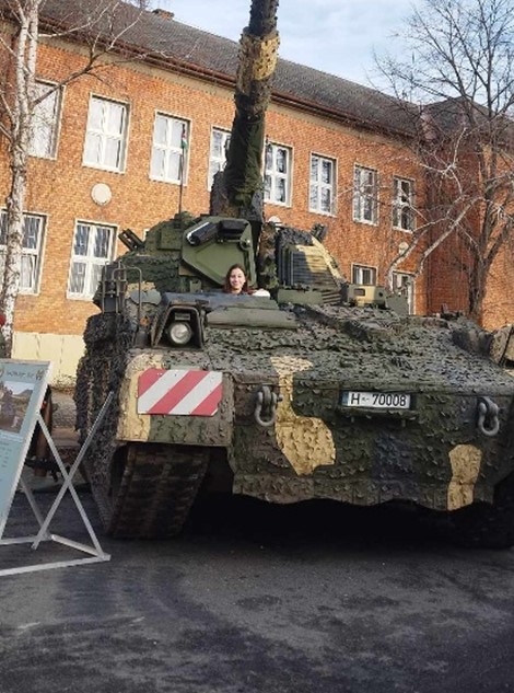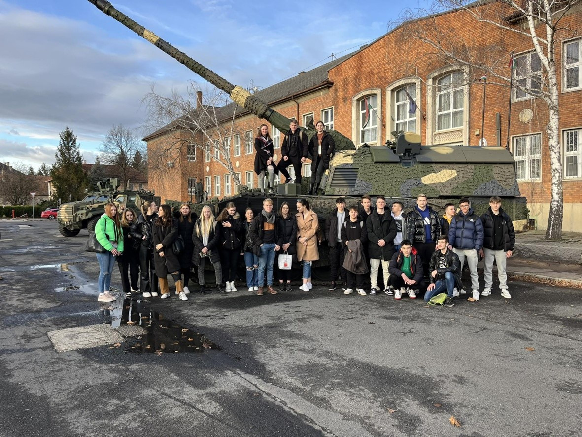 Február 5-én a tatai honvédség látogatott iskolánkba (A Győri Szakképzési Centrum Bercsényi Miklós Közlekedési és Sportiskolai Technikumába). Megnézhettünk egy harckocsit, egy terepjárót és több fegyvert is, géppuskákat és pisztolyokat egyaránt. A járművekre felmászhattunk és beülhettünk. A harckocsi mellett megtalálhatóak voltak a hozzá illő gránátok, lövedékek, amelyeket szintén megnézhettünk és kézbe is vehettünk.