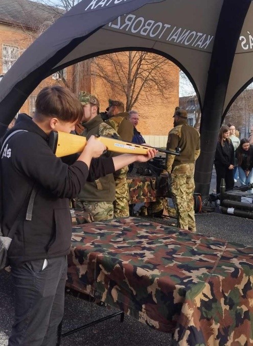 Volt egy katonai toborzó sátor, ahol sok prospektust kaptunk a katonasággal kapcsolatban. Az osztálynak nagyon tetszett ez a program, sok mindent kipróbáltunk.