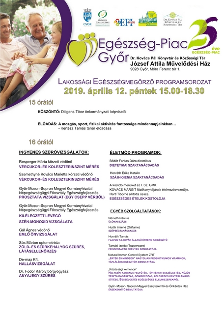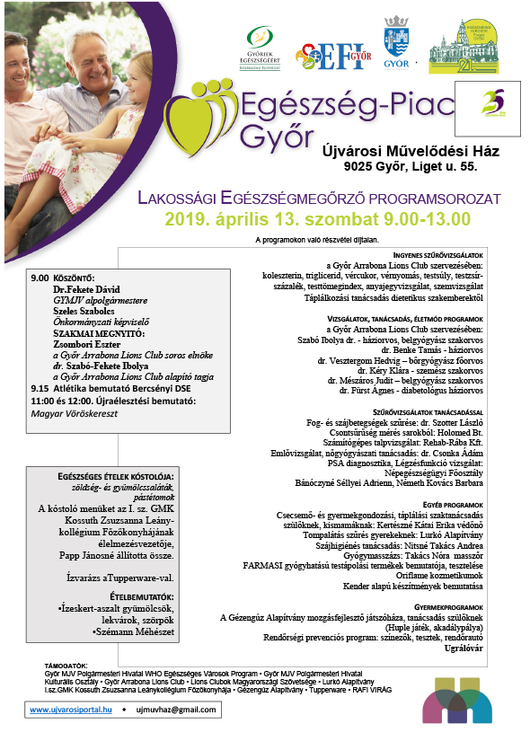 Részletes program és további információk az egeszseg.gyor.hu, a gyorplusz.hu honlapokon és a Facebookon.