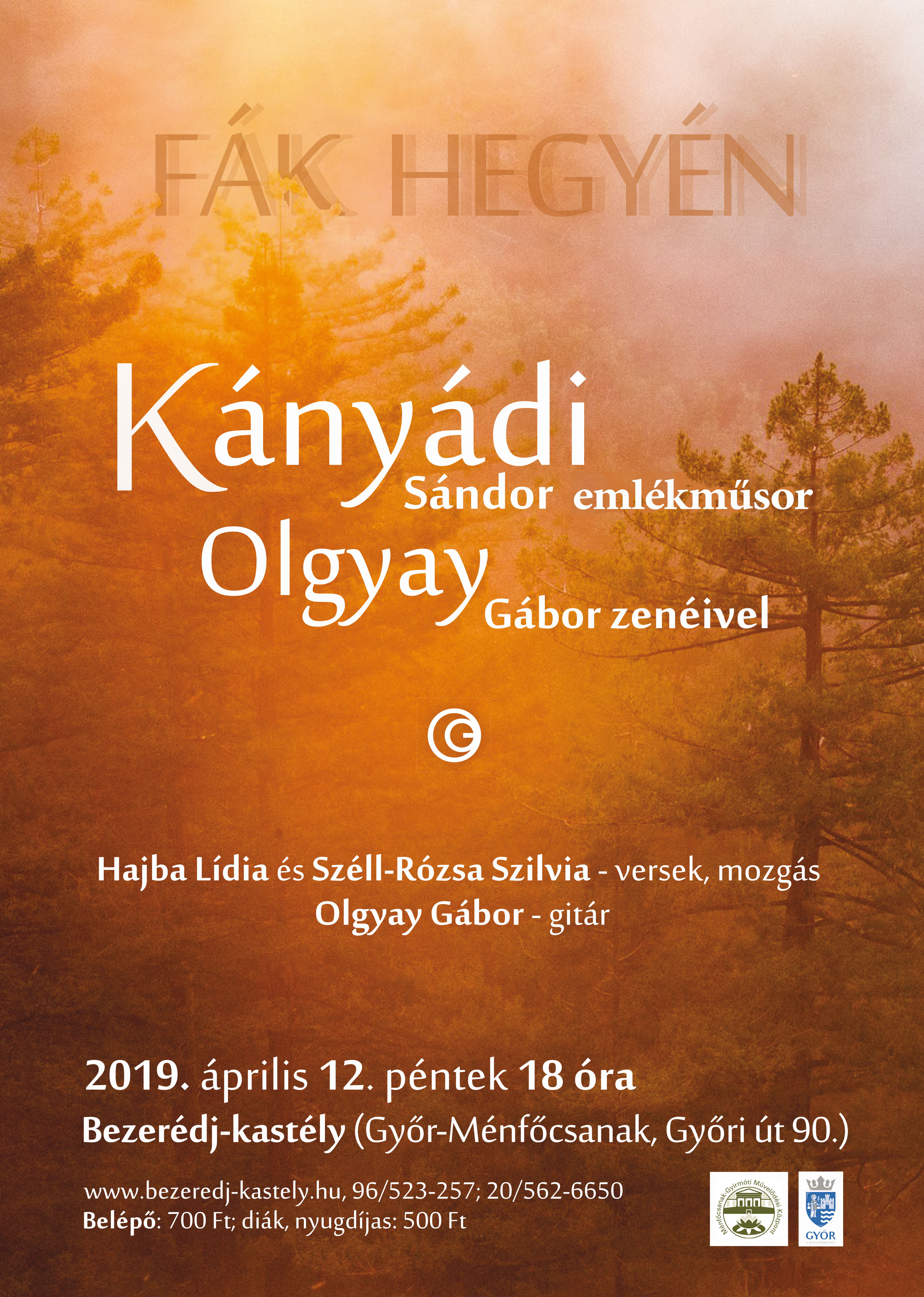 „Fák hegyén” címmel tartanak Kányádi Sándor emlékműsort Olgyay Gábor zenéivel április 12-én 18 órától a Bezerédj-kastélyban (Győr, Győri út 90.).