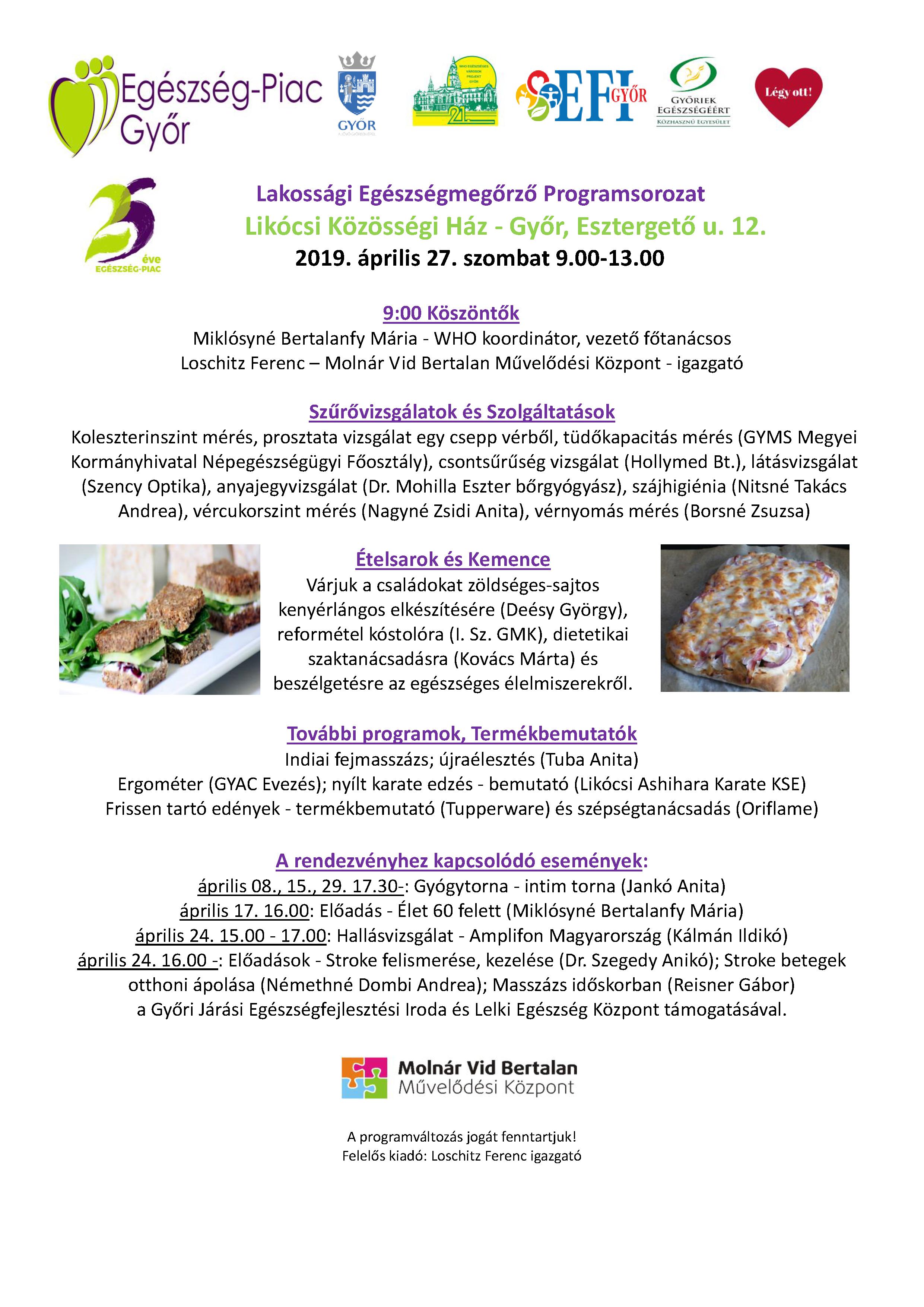 Részletes program és további információk az egeszseg.gyor.hu, honlapon.